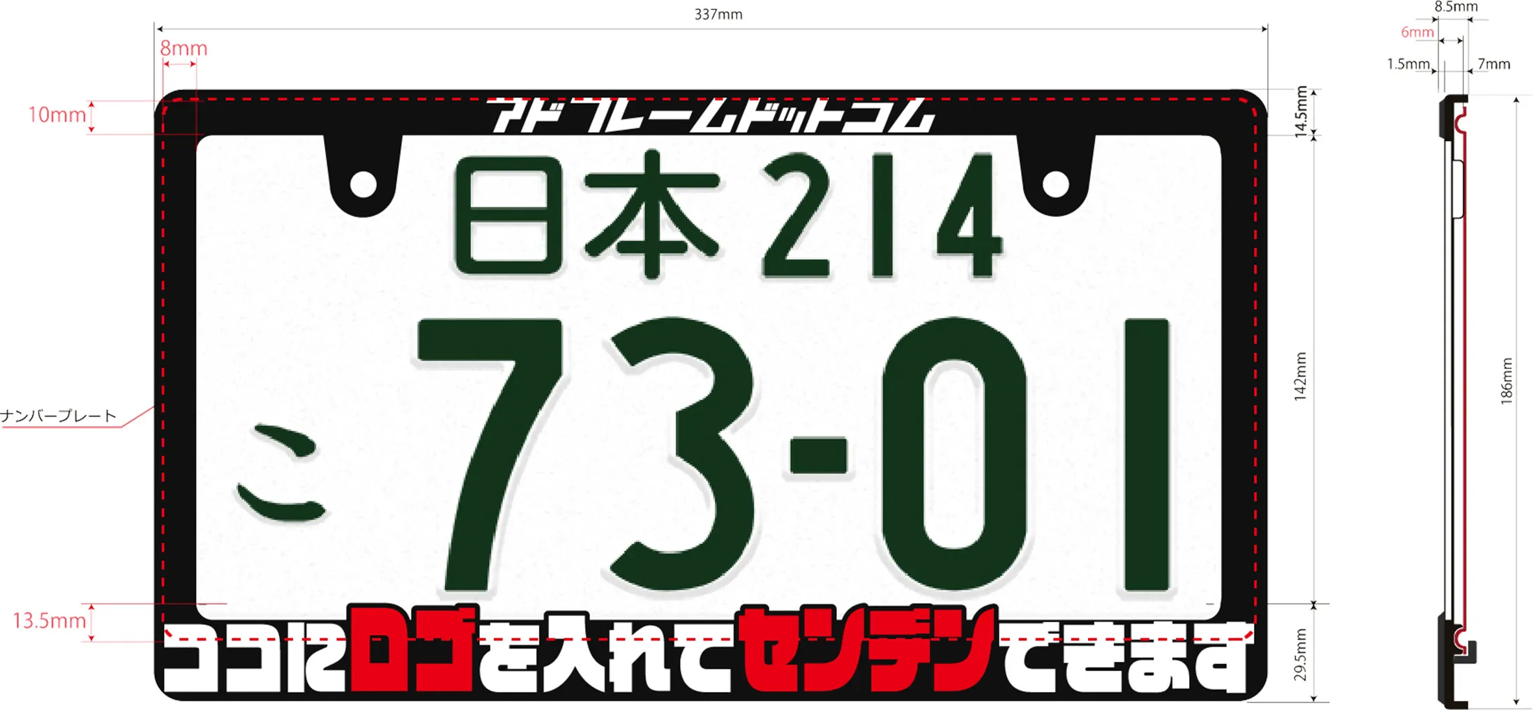2021年10月から適用の道路交通法新基準により、ナンバープレートフレームの寸法が明確に規定されました。
