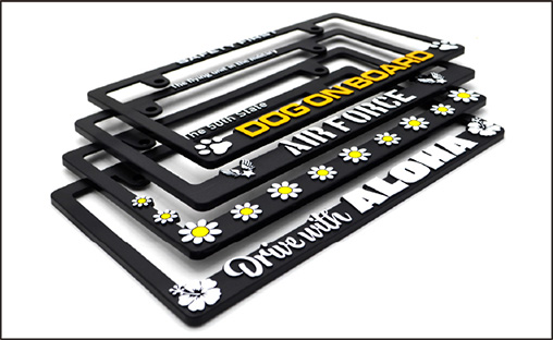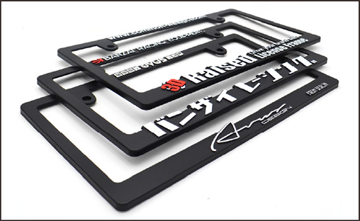 ロゴやメッセージ部分が立体成型となるライセンスフレームです。USAで最も一般的なスタイルは、注目度も抜群。