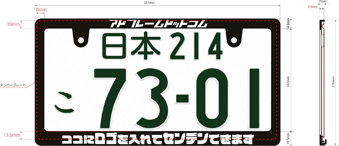 30枚からの小ロットでの製作が可能な、プリントタイプのナンバープレートフレームです。